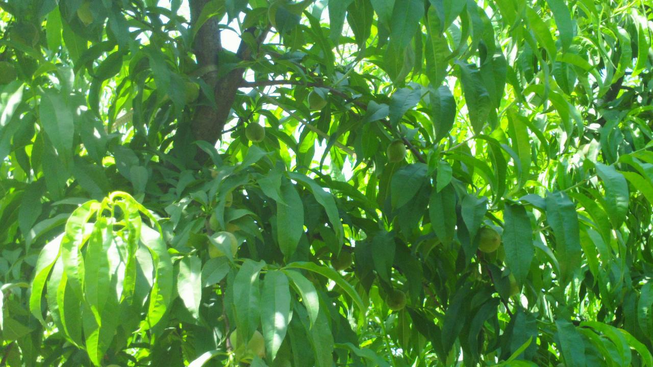 Cling peaches are far different from the typical fresh-market peach in that they do not get a deep red color at maturity, but rather a deep golden, almost orange color.