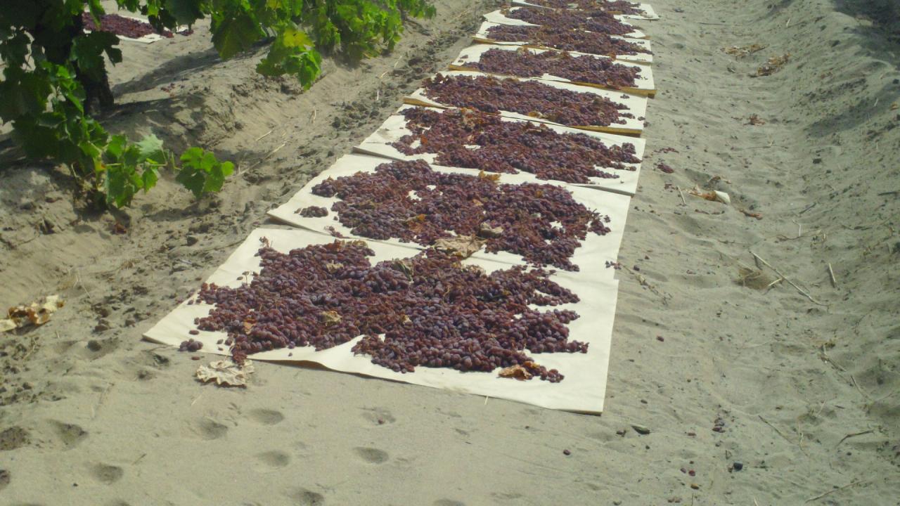 Because our vineyards were planted many years ago - before there was any such thing as a mechanical grape harvester, they must all be hand harvested. The experience of picking grapes, laying them on paper trays to dry, turning the paper trays (if necessary), rolling up the paper trays once the grapes have dried into raisins, and then finally picking up all of the rolled up trays and delivering the raw produst to the packaging facility remains one of the most labor intensive operations in the agricultural industry. We hope it is something we will be able to adequately show in pictures and video in order to give a real sense of what a raisin harvest is like...