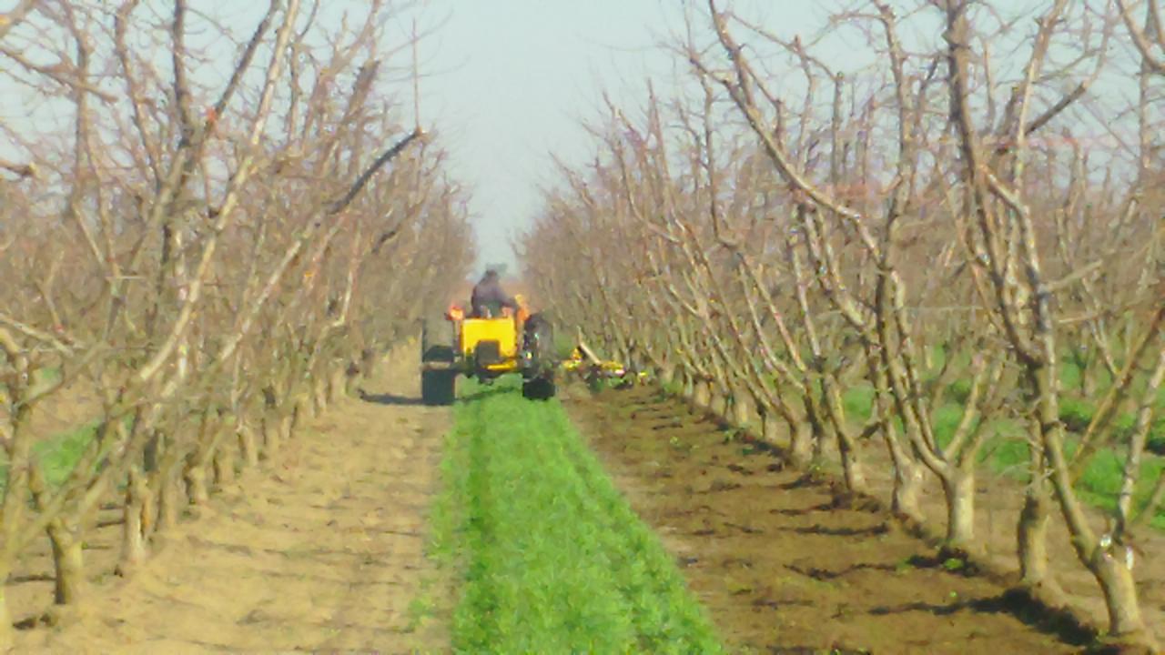 In organic systems, it gets a bit complicated...not too long ago, the consensus was that weeds are not that much of an economic factor in a mature orchard and organic operators would till (or disc) the fields on occasion and mow in between tillage cycles. Weeds on the berms (the elevated area from tree to tree down the row) were only controlled by 'cross-discing', a time consuming and difficult operation that would often lead to additional pest infestations and crop challenges.